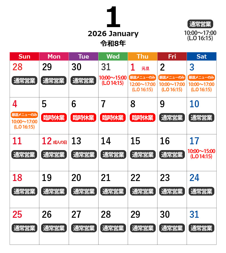 ■年末年始の営業は、下記のカレンダーをご覧ください。